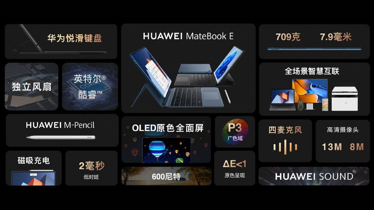 The new 2-in-1 device also comes bundled with a smart magnetic keyboard or slide keyboard, depending on the MateBook E configuration.