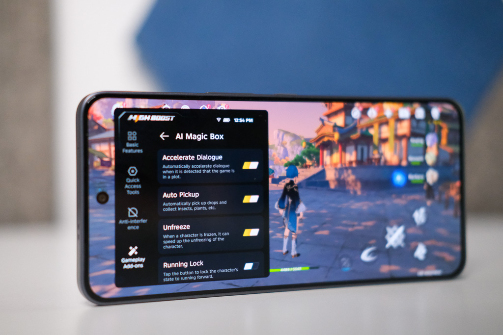 Gamespace is where players will spend a lot of time: it lets performance tuning per game, eye care toggles, Esports Mode, Off-Screen gaming, and crucially, Bypass Charging to power the phone directly from the charger and reduce battery heat and wear over long play sessions. There’s also an AI Magic Box overlay for contextual tips in supported games and Game Filters to change the visual look if a title’s default style isn’t to taste. The suite feels gamer-first without being too bloated.